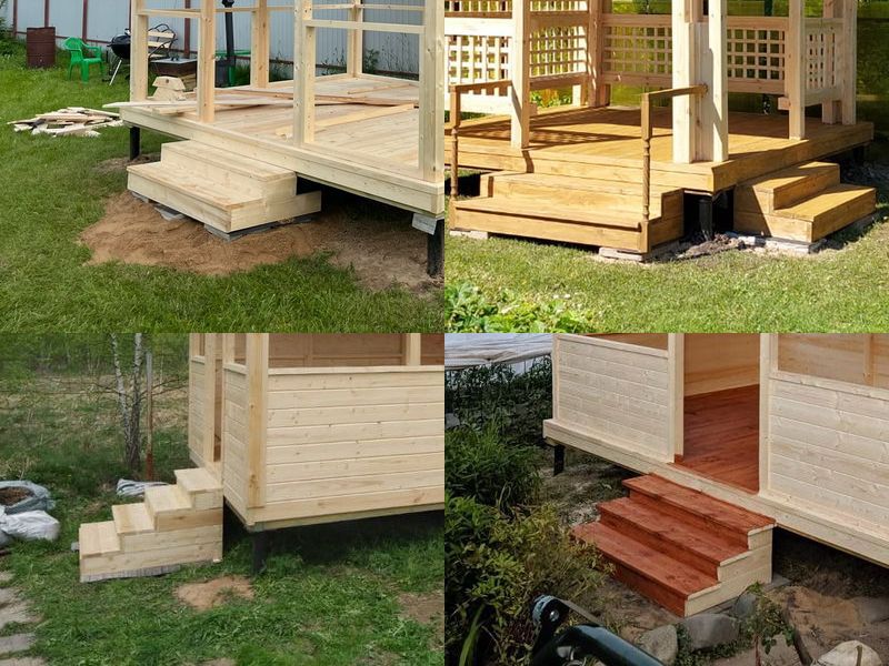 При установке хозблоков, беседок, бытовок, веранд на сваи ставится двойная или тройная ступень. Зависит от перепада участка и высоты свай. Цена: 3000-4500 руб.