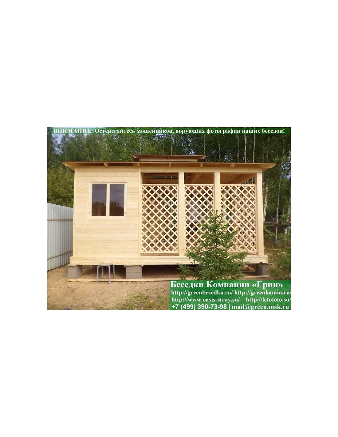 Стандартно беседка с хозблоком идет с проемами под крышей, между беседкой и хозблоком и хозблоком и улицей. Стоимость работ зависит от размеров беседки. Данная цена указана за работу беседки размерами 3х5 метров.