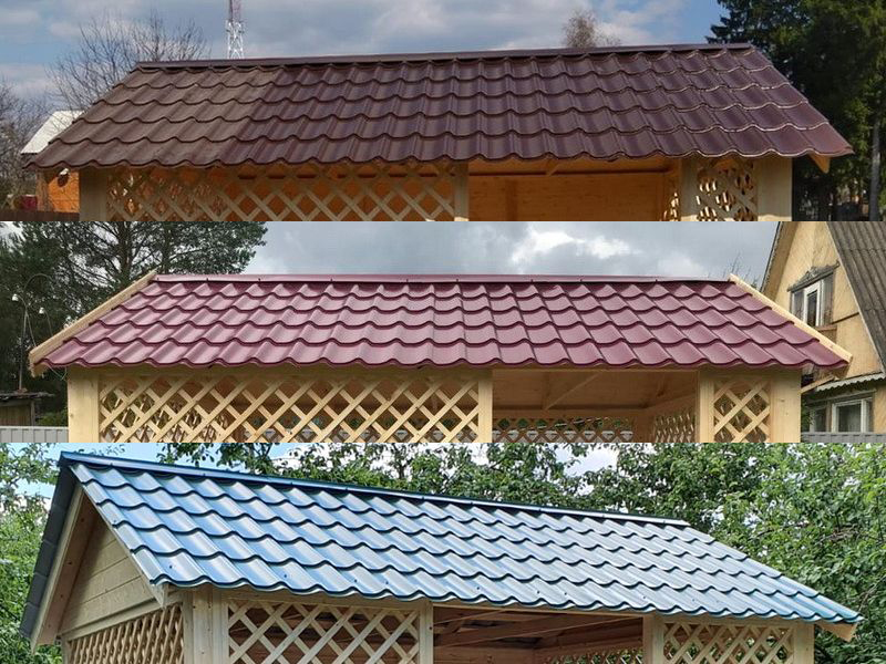 В стандартной поставке в виде кровли на крышу хозблоков, бытовок, беседок 3х7 метров кладется ондулин (мягкий шифер). Вы можете дополнительно заменить его на более надежную металлочерепицу. Цена 33000 руб.