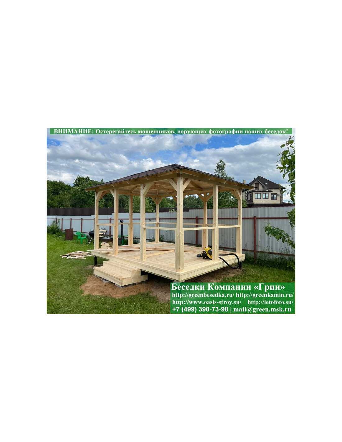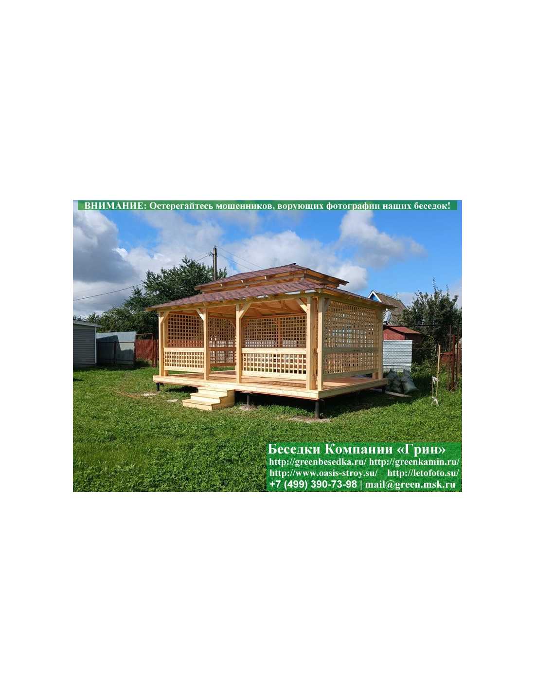 Разгрузка беседок, бытовок, хозблоков включена в стоимость. Место установки не должно быть дальше 20 метров от места разгрузки, иначе берется дополнительная плата. | Участок должен быть очищен от мусора, больших растений, кустов, пней и др. Участок должен иметь перепад не больше 20 см. иначе надо ставить сваи или выравнивать | На участке должно быть электричество. Если его нет, то об этом нужно предупредить, что бы установщики взяли генератор. Генератор предоставляется бесплатно. |