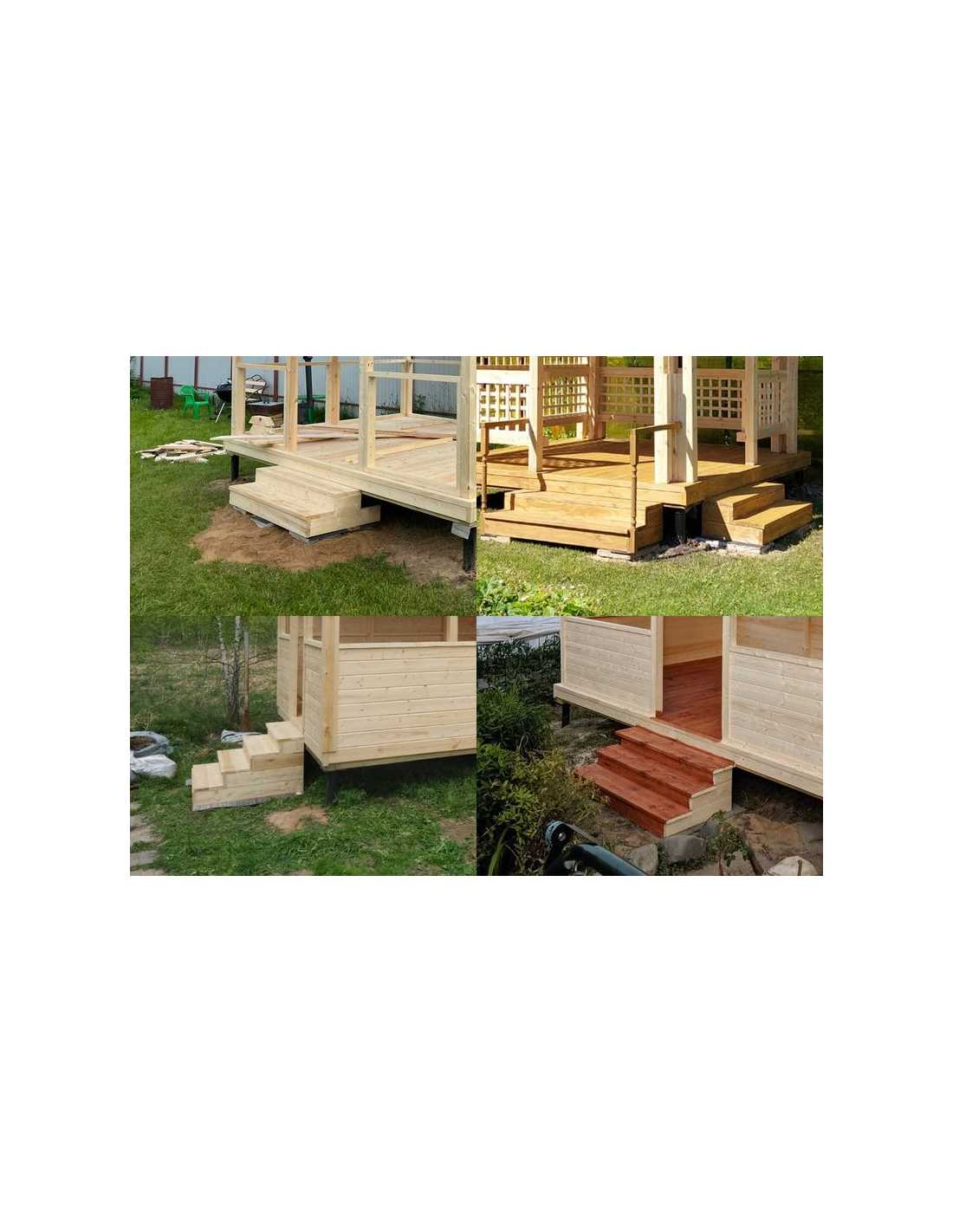 При установке хозблоков, беседок, бытовок, веранд на сваи ставится двойная или тройная ступень. Зависит от перепада участка и высоты свай. Цена: 3000-4500 руб.