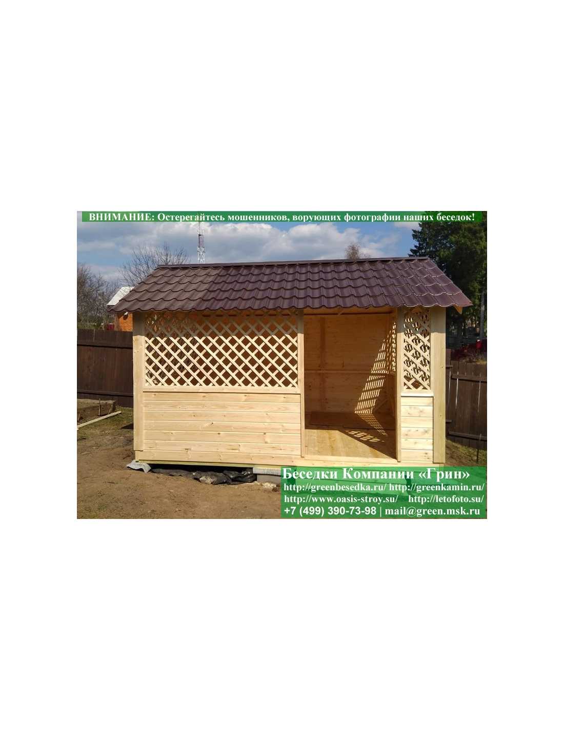 В стандартной поставке в виде кровли на крышу хозблоков, веранд, бытовок, беседок 3х6 метров кладется ондулин (мягкий шифер). Вы можете дополнительно заменить его на более надежную металлочерепицу. Цена 31000 руб.