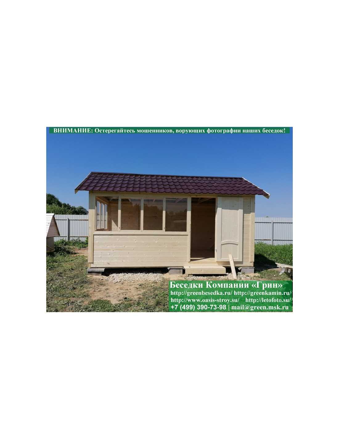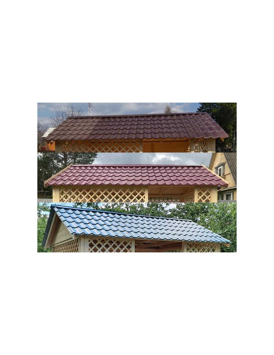 В стандартной поставке в виде кровли на крышу хозблоков, бытовок, беседок 4х6 метров кладется ондулин (мягкий шифер). Вы можете дополнительно заменить его на более надежную металлочерепицу. Цена 36000 руб.