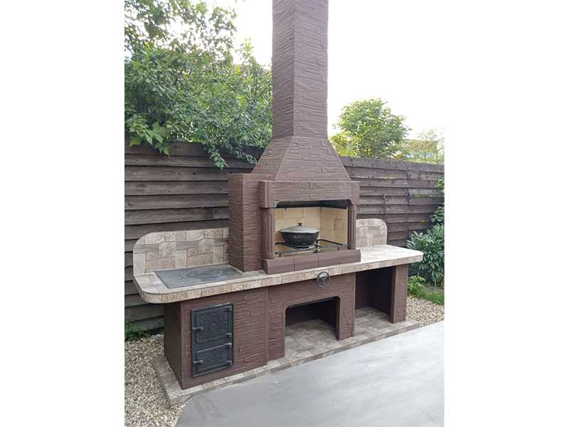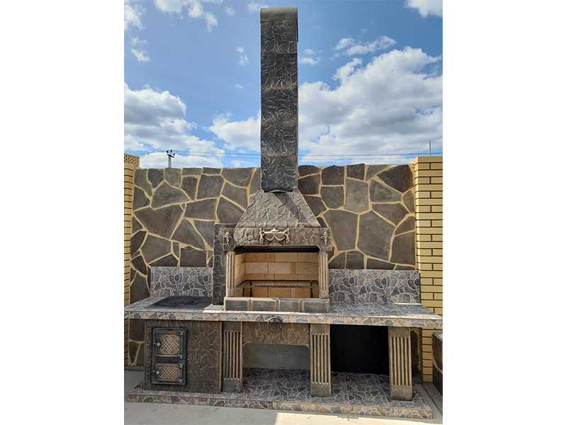 - Комплекс-барбекю с мойкой и плитой № 21 сделана из армированного огнеупорного бетона с добавлением керамзита;