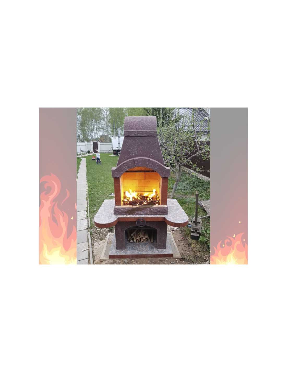 Выполнена из огнеупорного кирпича и армированного бетона. Снизу предусмотрено место для дров.