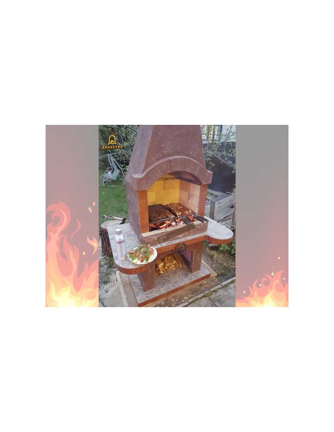 В остальном эта печь барбекю с грилем для дачи или загородного дома похожа на другие, более простые модели. У нее есть место для хранения дров и угля, а еще дополнительно (за отдельную плату) предусмотрен подъемный механизм для решетки. Последний помогает менять положение мангала в зависимости от того, насколько разогреты угли.