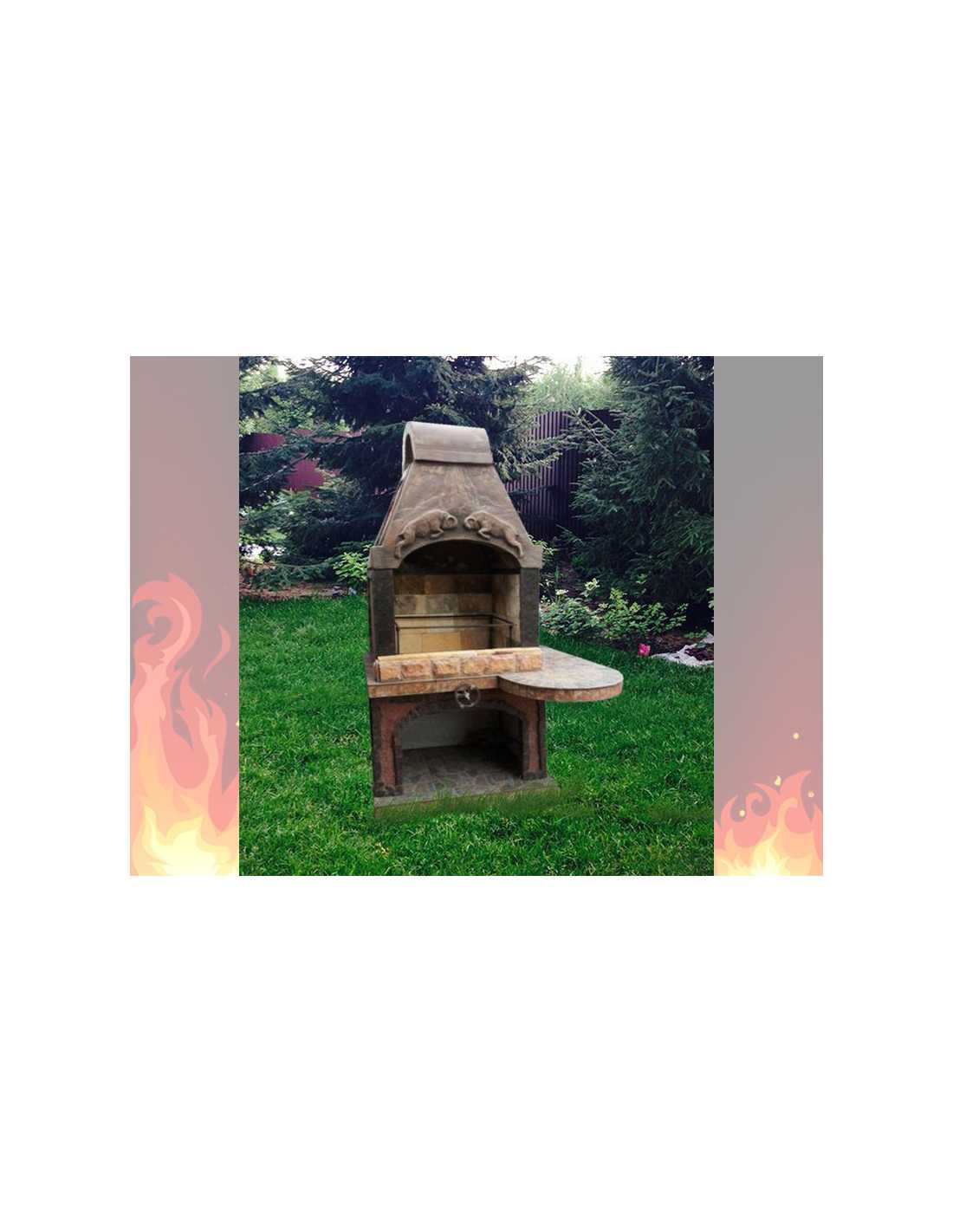 Выполнена из огнеупорного кирпича и армированного бетона. Снизу предусмотрено место для дров.