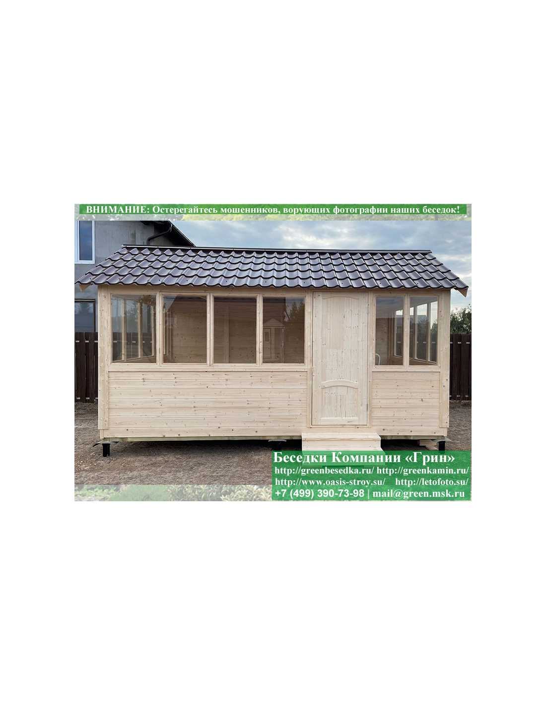 В стандартной поставке в виде кровли на крышу хозблоков, веранд, бытовок, беседок 3х5 метров кладется ондулин (мягкий шифер). Вы можете дополнительно заменить его на более надежную металлочерепицу. Цена 26000 руб.